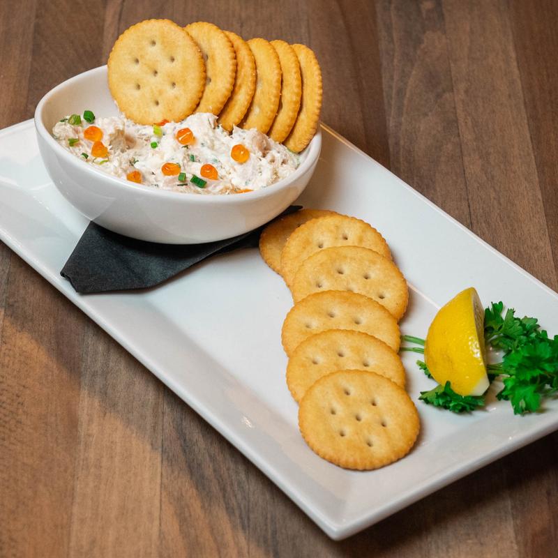With crème fraîche, lemon, chives, shallots, served with Ritz crackers and salmon roe